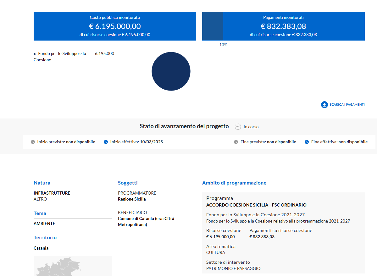 Nel complesso, il progetto può essere considerato un’iniziativa importante per il patrimonio culturale di Catania. L’efficacia complessiva, al momento, può essere giudicata positivamente sul piano delle intenzioni e della struttura di finanziamento, ma resta da verificare nella pratica. La sua riuscita dipenderà da una progettazione accurata, da una gestione trasparente e dall’assenza di ritardi rilevanti nelle fasi operative. Il potenziale impatto culturale e turistico è significativo e giustifica pienamente l’investimento programmato.