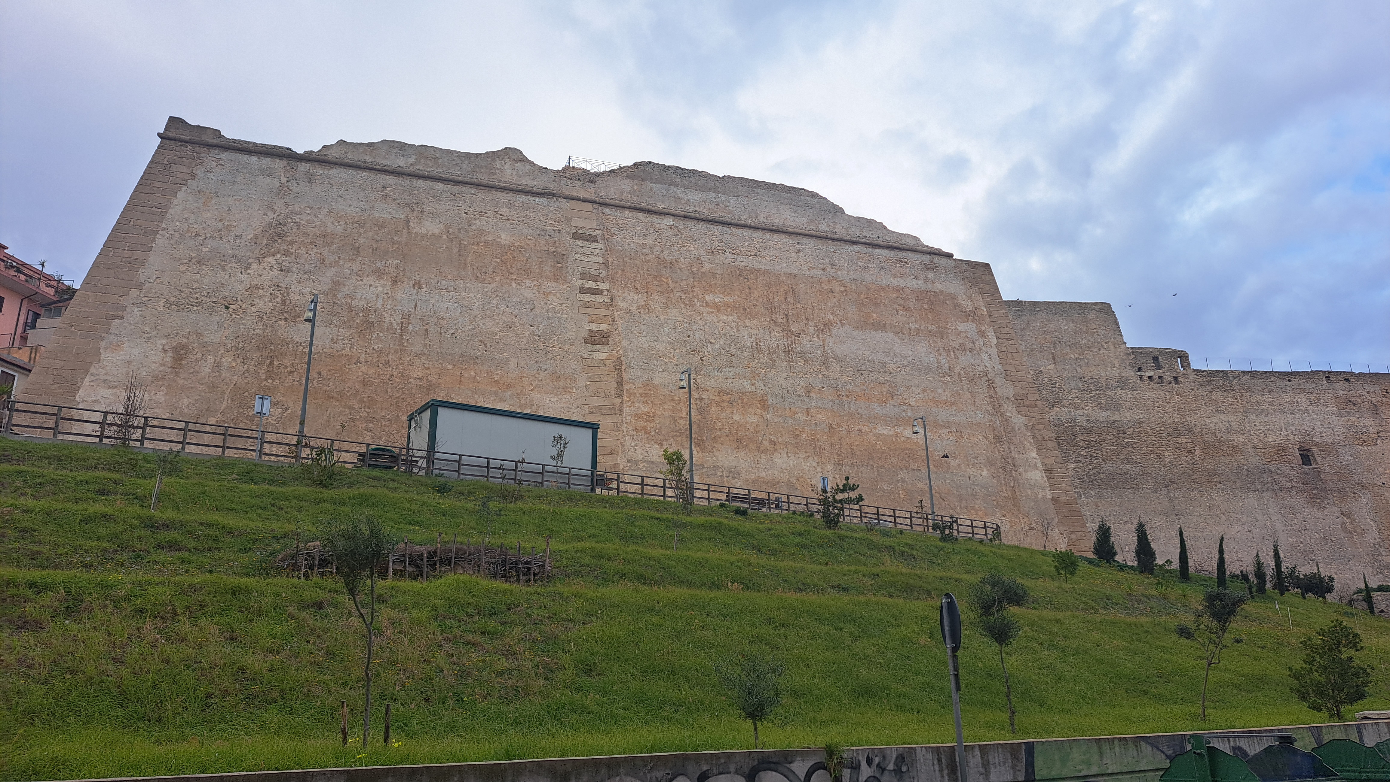 Apparentemente i lavori di restauro del Bastione S. Giacomo sono terminati ma non molto si sa sulla variante del progetto iniziale, richiesta con procedura d'urgenza dalla Soprintendenza, guidata dalla Dott.ssa Stefania Argenti, resasi necessaria poiché, durante i lavori di ultimazione del progetto iniziale, i restauratori si sono accorti che una parte significativa del muro che collega il Bastione S. Giacomo al Bastione S. Caterina era a rischio crollo e dunque si spiega così un lieve ritardo sulla data di scadenza dei lavori (https://catanzaro.gazzettadelsud.it/articoli/cronaca/2024/11/18/il-nuovo-bastione-del-castello-vede-la-luce-cosi-crotone-recupera-un-proprio-tesoro-3c78d56b-7ca8-41dc-9d88-81d8ebfdd4a7/). Dalle ricognizioni da noi effettuate sia di persona e sia grazie all'utilizzo di un drone (si veda nell'apposita sezione lo splendido video da noi effettuato) e dalle diapositive in nostro possesso si evince che il restauro esterno è consono alla struttura originaria, i materiali e il colore di detti materiali rispecchiano fedelmente come doveva apparire il bene architettonico al momento della sua edificazione. Abbiamo infatti allegato nella sezione "RISORSE CARICATE" una serie di diapositive che erano state scattate prima del restauro e dalle quali era assolutamente evidente un logoramento dei materiali e un imbrunimento di tutta la imponente struttura. Ciò naturalmente è dovuto allo scorrere del tempo, ma anche a fattori quali l'inquinamento ambientale, gli agenti atmosferici e più in generale a una serie di interventi passati posti in essere con una certa fretta e, in qualche caso, con una certa imperizia. Gli effetti del restauro sono evidenti soprattutto quando ci si avvicina al paramento ovest dal quale è possibile fare un confronto tra questo e la Torre Comandante che mostra evidenti segni di logoramento e imbrunimento in uno stato avanzato. Nelle giornate di sole il restauro dona luce al quartiere che si approssima al bene architettonico e tutta l'area circostante dà l'impressione di aver subìto un radicale cambiamento. Tuttavia dalle foto scattate durante la visita di monitoraggio (22/02/2025) la parte che ha necessitato di una variante rispetto al progetto iniziale evidenzia un'area esterna pavimentata con ciottoli, delimitata da una recinzione metallica grigia. Al centro della recinzione, è presente un segnale di divieto di accesso. Oltre la recinzione, si estende un'area pianeggiante di terreno brullo, con alcune chiazze di erba secca e cespugli radi. Sullo sfondo, si intravede una linea di vegetazione più fitta, con alberi spogli e arbusti. Nel complesso possiamo affermare, dunque, che il restauro della parte esterna è visibilmente terminata mentre la variante che prevede un intervento sulla parte superiore del bastione S.Giacomo non ci risulta essere cominciata.