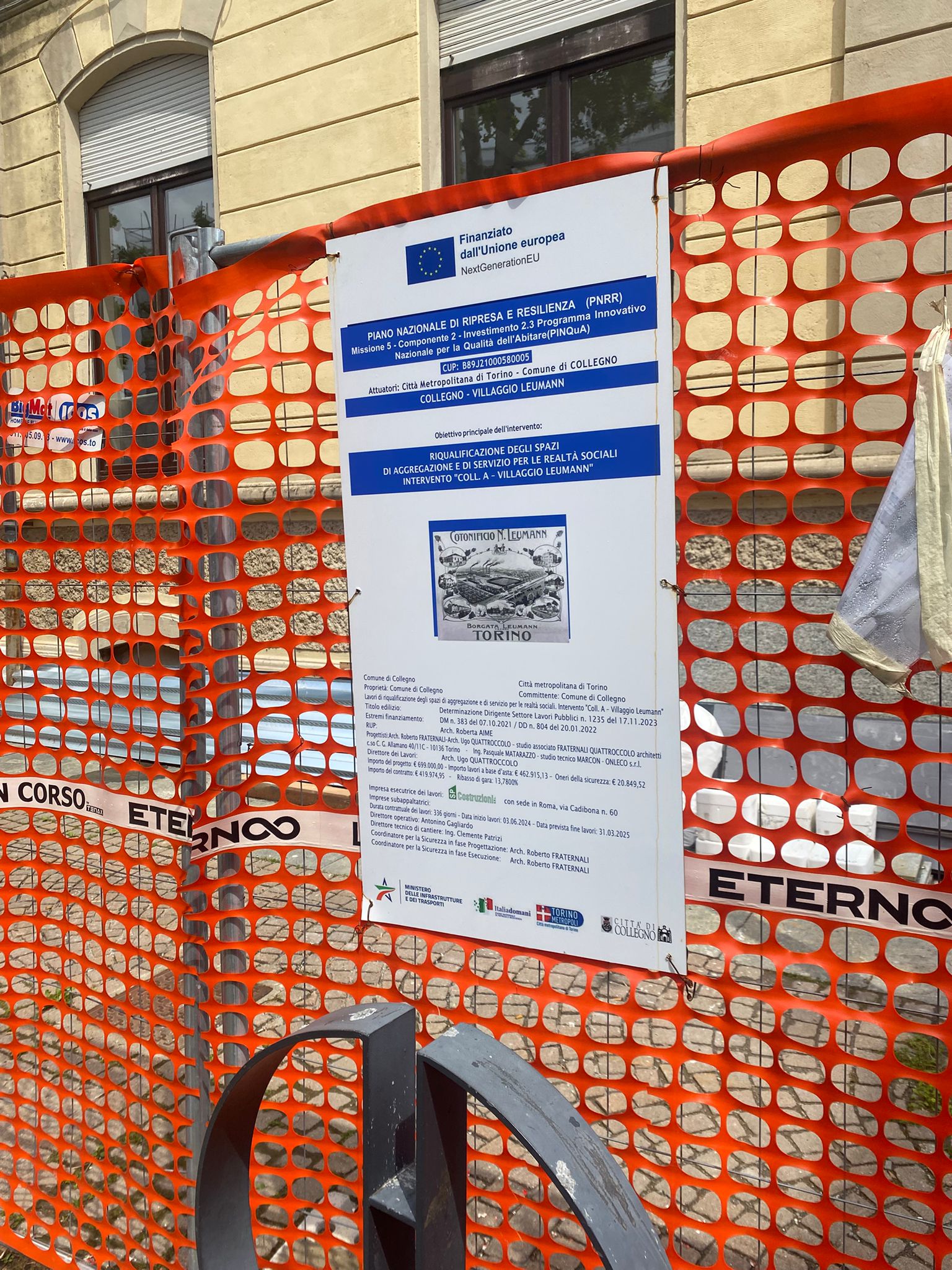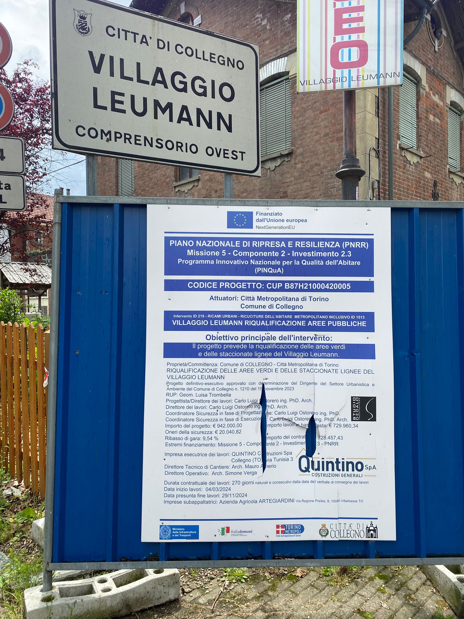 Il progetto si propone di riqualificare alcuni edifici nei pressi del Villaggio Leumann, un quartiere storico del comune di Collegno (TO). In particolare la riqualificazione degli spazi di aggregazione e sociale all’interno del Villaggio Leumann è stata pensata nell’ottica di creare un punto di accoglienza in grado di soddisfare i servizi turistici culturali di valorizzazione e promozione del Villaggio. Gli edifici oggetto di riqualificazione sono la facciata della biblioteca, un edificio storico collocato nell’edifico centrale del'ex Convitto delle Operaie. L’edificio in questione, inaugurato nel 1906 ospitava le ragazze e le donne che lavoravano nel Cotonificio. Oggi ospita la Biblioteca e l'Informagiovani. Il secondo edificio è la "stazionetta", molto importante per il Villaggio Leumann perchè è l'ultimo simbolo della linea del tram storica che un tempo passava, oggi l'edificio viene usato da associazioni del territorio. e il piano terra del centro anziani, quale luogo che favorisca l’integrazione, il confronto e lo scambio esperenziale e culturale tra le persone. Secondo il progetto, saranno realizzate iniziative volte a prevenire l’abbandono scolastiche a supportare la popolazione residente con azioni ricreative, socializzanti e formative.