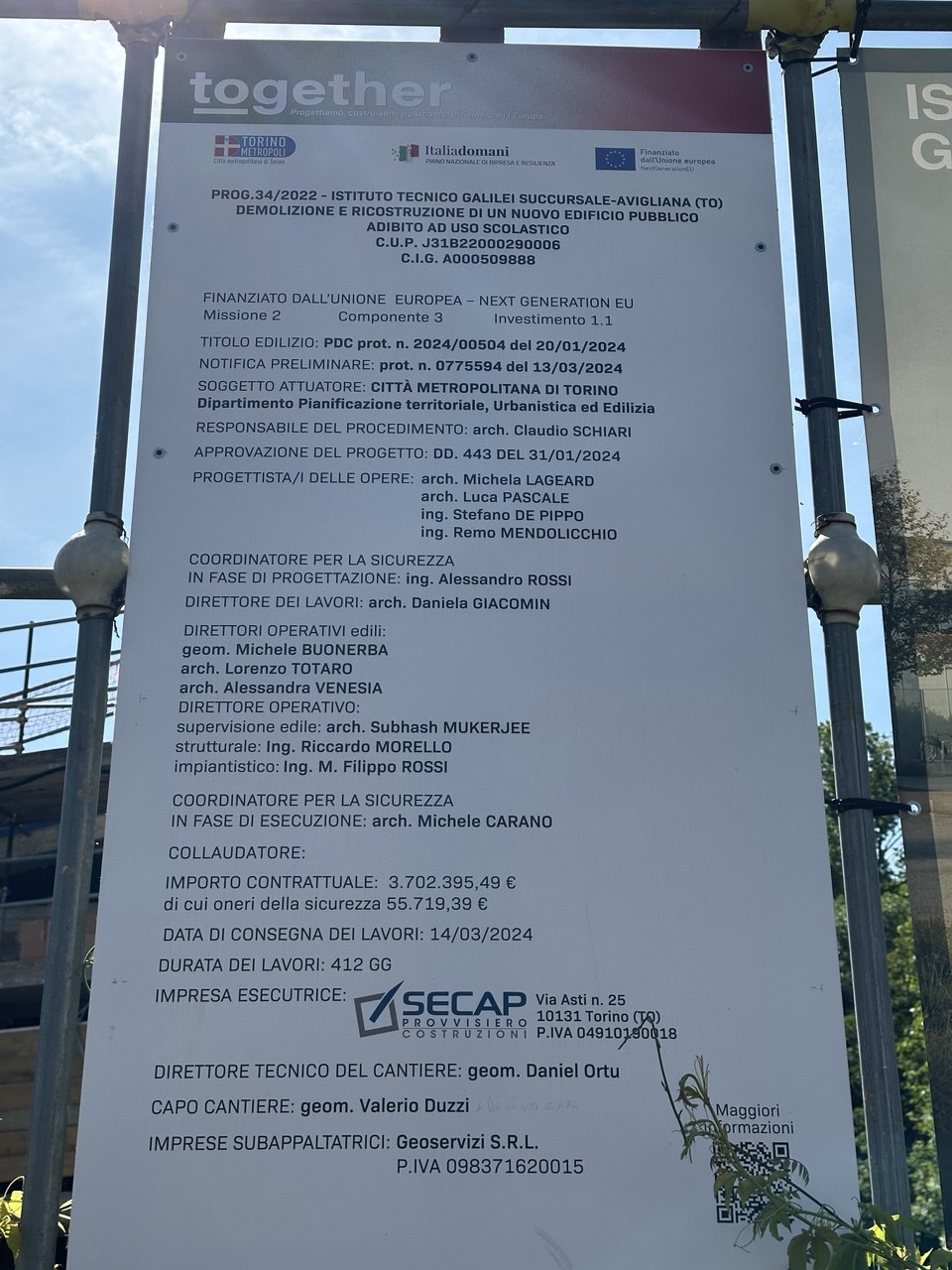 AVIGLIANA - ISTITUTO TECNICO GALILEI, VIA G.B NICOL N.1- DEMOLIZIONE E RICOSTRUZIONE DI UN NUOVO EDIFICIO ADIBITO AD USO SCOLASTICO