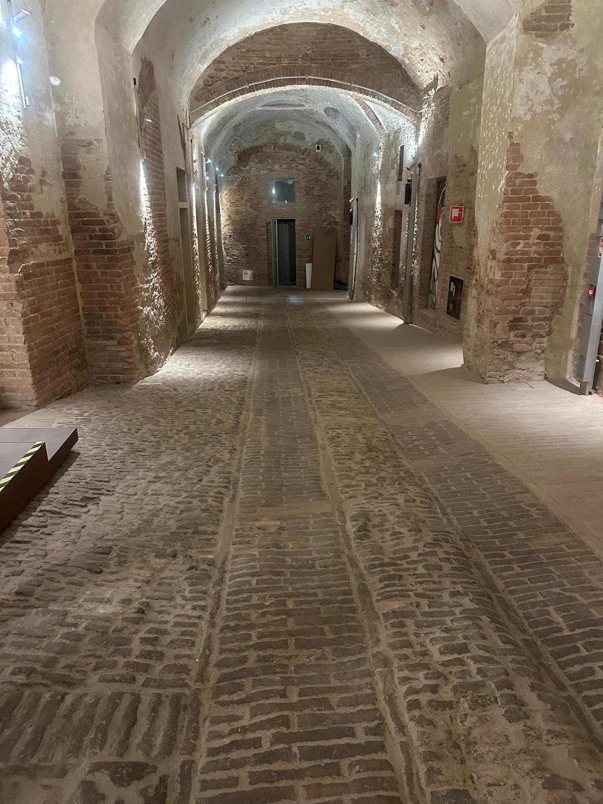 Il progetto ha inoltre valorizzato la funzione storica della strada interna, anticamente asse operativo fondamentale per le attività dell’ospedale medievale. Oggi, grazie agli interventi realizzati, questo tracciato torna a essere spazio urbano vissuto, accessibile e carico di significato.