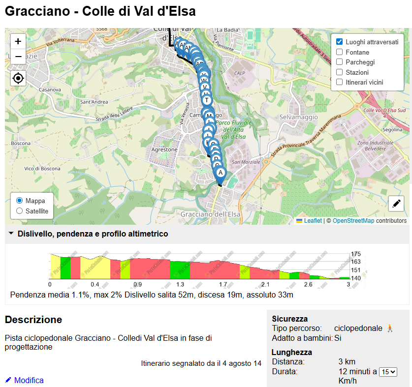 Tuttavia, da un sondaggio effettuato all' interno della scuola è emerso che la maggior parte degli studenti che risiedono a Colle Val D' Elsa non ne conosce l' esistenza né l' ha mai utilizzato per spostamenti in bicicletta; risulta invece più frequentato, per brevi tratti, per la mobilità pedonale.