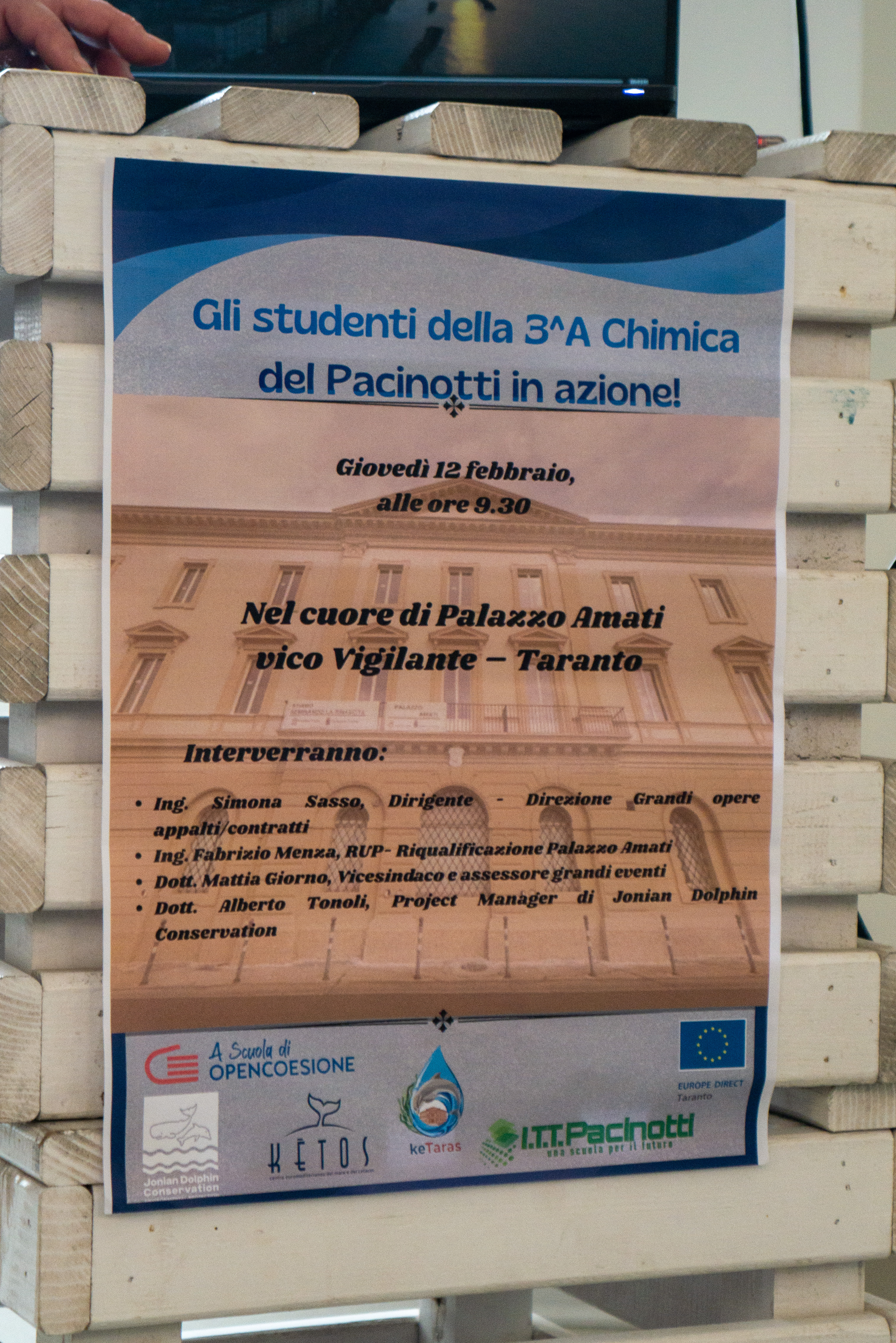 La ristrutturazione di Palazzo Amati rientra nel programma SISUS (Strategia Integrata di Sviluppo Urbano Sostenibile), finanziato con il POR Fesr-Fse Puglia 2014-2020. Dopo l’aggiudicazione del finanziamento, si è avviato il completamento dell’iter di rifunzionalizzazione, finanziato con il POR Fesr-Fse Puglia 2014-2020 – del primo e del secondo piano di Palazzo Amati, in cui grazie a Fondazione CON IL SUD, che ha messo a disposizione complessivamente circa 1 milione e 250 mila euro per avviare le fasi di start-up dell’attività di valorizzazione del bene. L’amministrazione comunale di Taranto e la Fondazione CON IL SUD hanno emesso un bando congiunto per la gestione e la valorizzazione del primo e secondo piano di Palazzo Amati che è stato aggiudicato dal centro Ketos - ASSOCIAZIONE JONIAN DOLPHIN CONSERVATION, pertanto gli hanno concesso il primo e secondo piano di Palazzo Amati in comodato d’uso gratuito, per una durata di 10 anni. Il progetto vincitore, presentato da KETOS è la creazione del" CENTRO EUROMEDITERRANEO DEL MARE E DEI CETACEI", che creerà un polo dedicato alla cultura del mare attraverso l’attivazione di servizi culturali innovativi e qualificati, legati al recupero delle identità locali nel territorio di Città Vecchia a Taranto, in connessione con l’iniziativa internazionale del San Paolo Dolphin Refuge, per dare rifugio ai delfini nell’area marittima di fronte al bene.