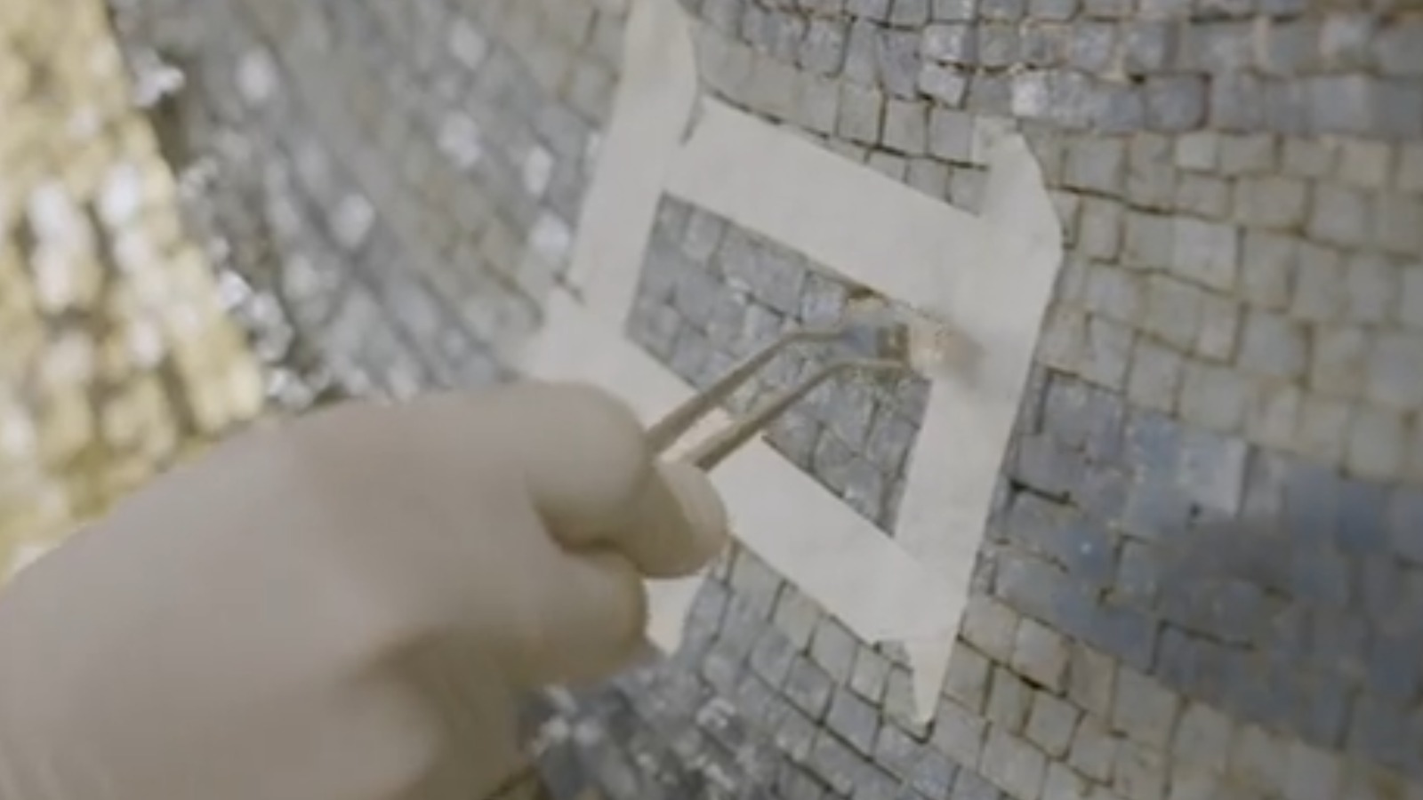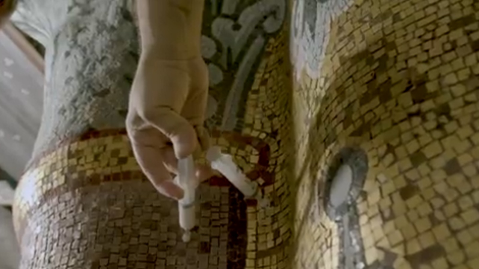 La Piacentivi srl, la ditta che si è occupata del lavori di restauro dei mosaici e degli stucchi, attraverso un video, dove intervenivano esperti di tecniche di restauro, di cui siamo venuti in possesso, grazie al Dr. Di Vico, ci ha permesso di evidenziare quanto segue