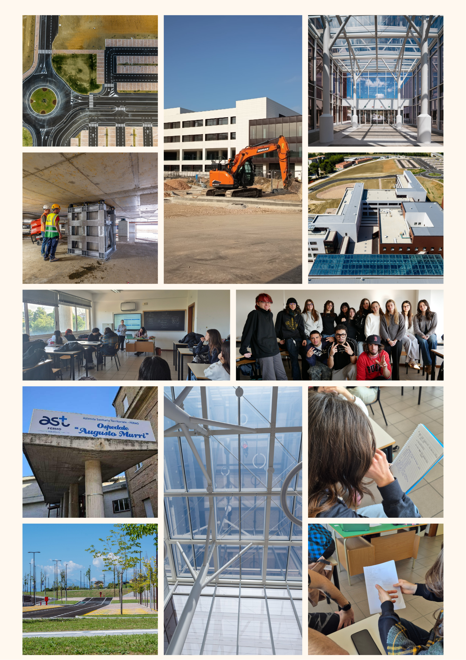 Il progetto prevede la costruzione del Nuovo Polo Ospedaliero di Fermo in località Campiglione, un'opera strategica destinata a sostituire l'attuale e ormai superato ospedale "Murri". La struttura si estende su una superficie di circa 140.000 mq ed è articolata in quattro blocchi funzionali progettati con i più alti standard antisismici e di efficienza energetica. L'obiettivo principale è fornire al territorio una dotazione di circa 372 posti letto e sale operatorie ibride, integrando tecnologie mediche d'avanguardia come la robotica chirurgica e sistemi di diagnostica per immagini di ultima generazione.
