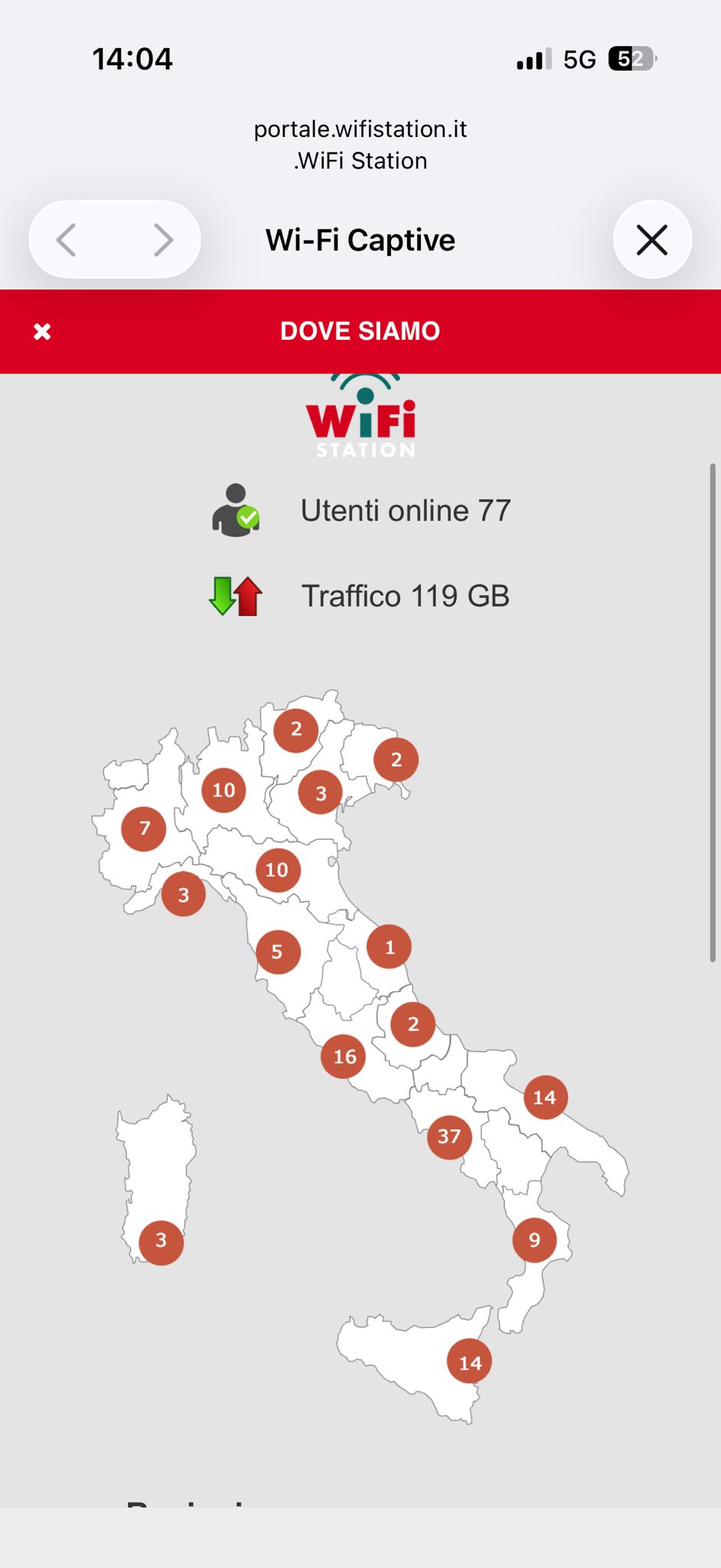 Based on the information and checks carried out, the Wi-Life Station service is currently installed in the municipality of Acireale. Therefore, contrary to what we have been told, we are not aware of any relocation or movement of the station to another location. Consequently, we are unable to determine whether the possible absence or inactivity of the service may actually be linked to a possible transfer of the infrastructure. Further checks will therefore be necessary to clarify the situation more precisely and understand the current status of the service.